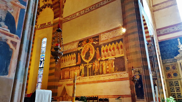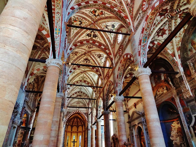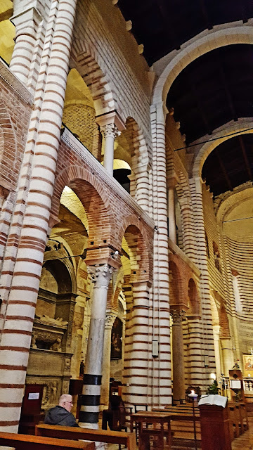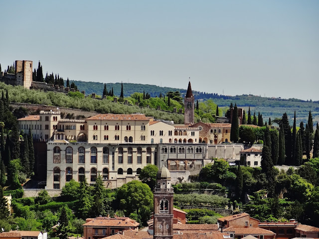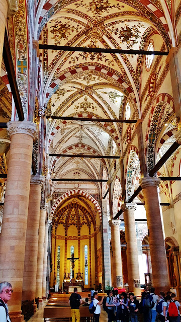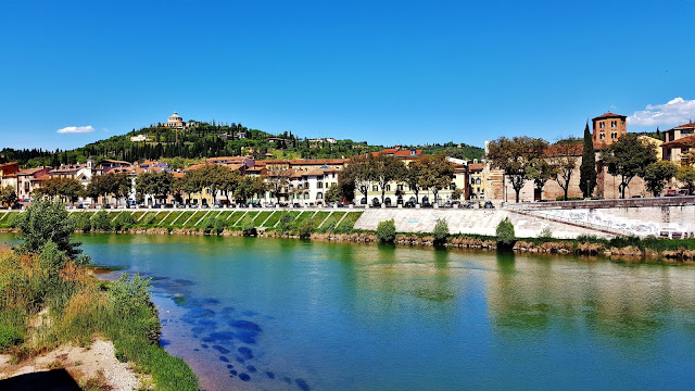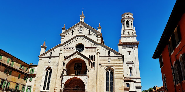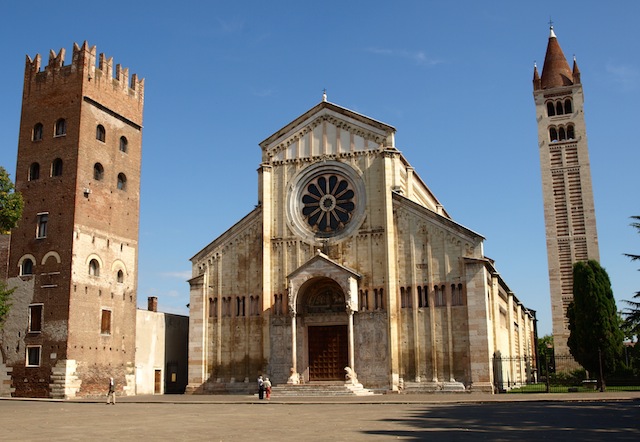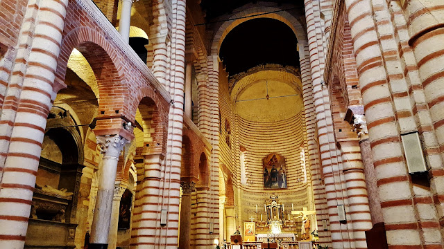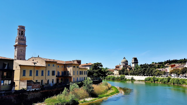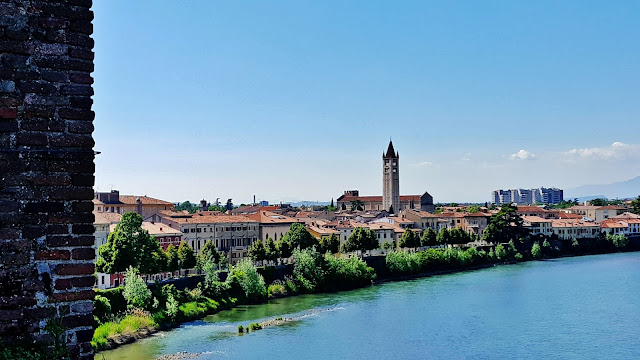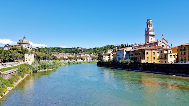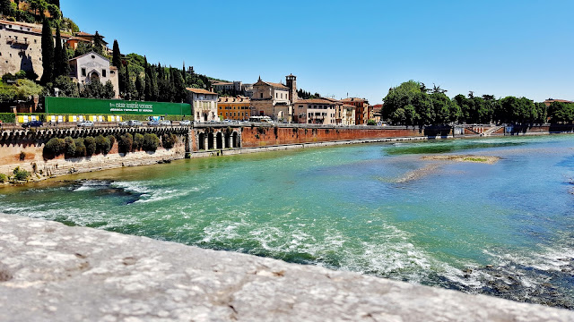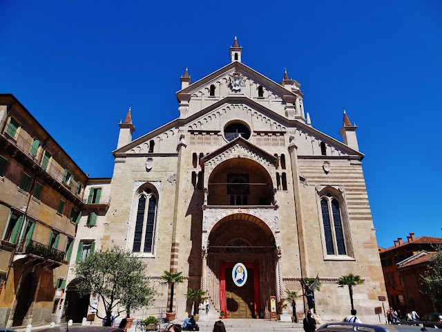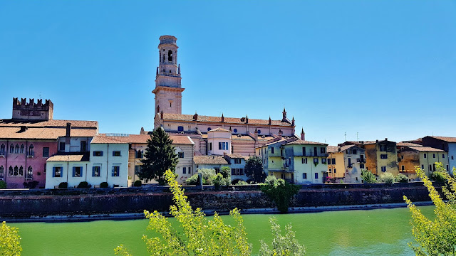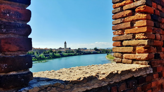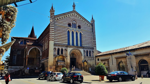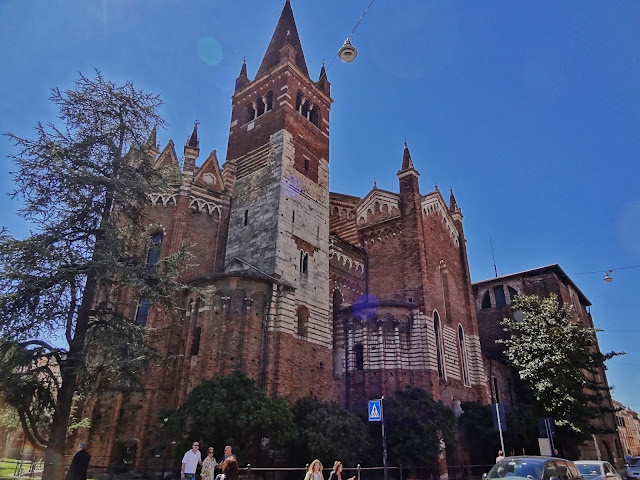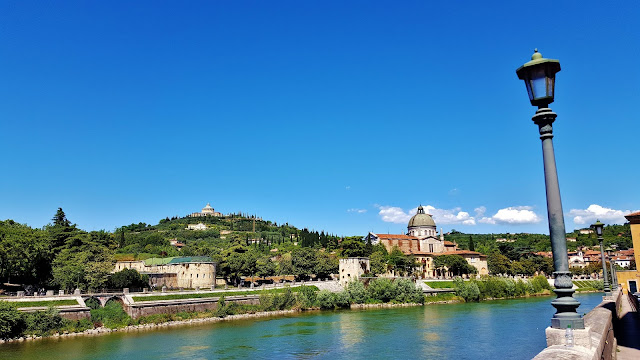 Nos faltó por visitar la Basílica de San Zeno, que está relativamente cerca de Castelvecchio como a 1 km caminando, aunque a nosotros nos alejaba del parking y no sacamos fuerzas para ir hasta su ubicación. Nos conformamos con observarla desde el puente de Castelvecchio. Es una importante iglesia románica en cuya cripta se dice casaron los amantes veroneses.