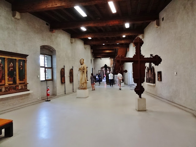 El interior del castillo es ahora un museo diseñado y restaurado en 1957 por un prestigioso arquitecto italiano llamado Carlo Scarpa, definiendo una treintena de espacios en los que se pueden encontrar esculturas, pinturas, armas, cerámicas , joyas, miniaturas y antiguas campanas.