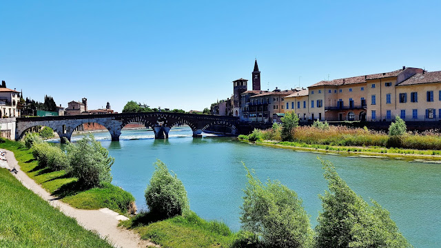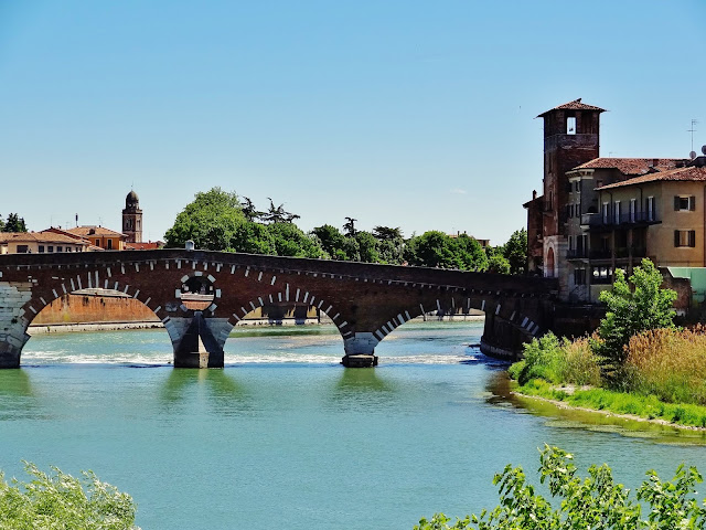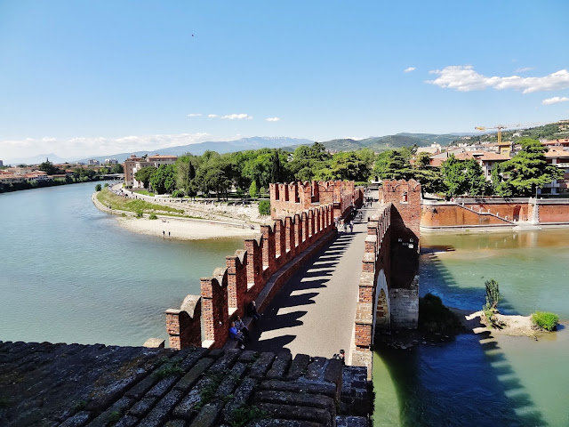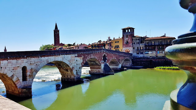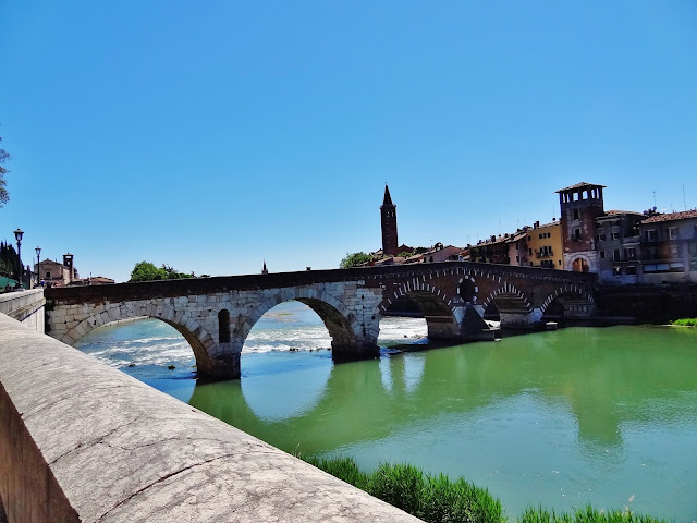 Es un precioso puente romano de 120 metros que salva el río Adige en la zona de comunicación de la ciudad con el Teatro Romano, que no pudimos visitar por encontrarse en obras.