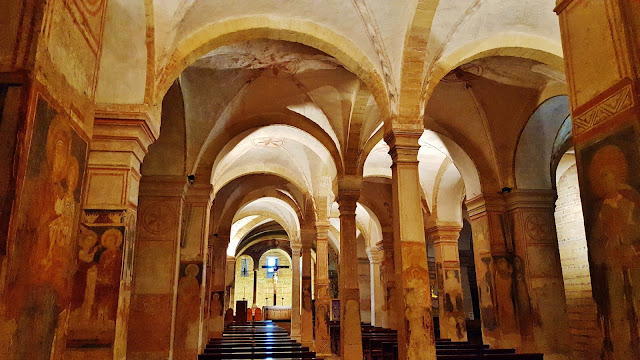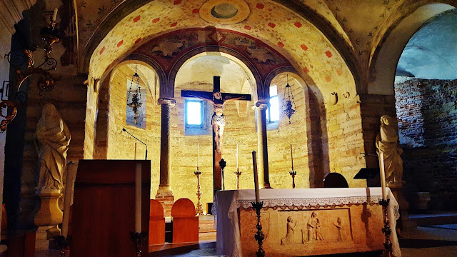 Descendiendo unas pocas escaleras se accede a la impresionante iglesia románica que se construyó entre los años 1065 y 1143 sobre los restos de otra aún más antigua iglesia del siglo V.
