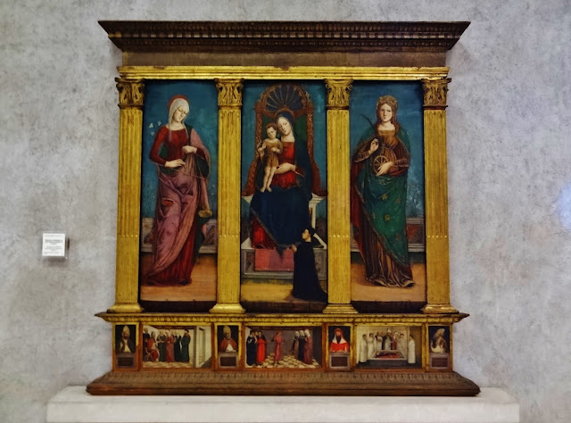 Desde la Piazza podíamos haber realizado un recorrido por algunas calles interiores del Palazzo Ducal, como la Piazza del Castillo o la Piazza Santa Bárbara y la Piazza Giovanni Paccagrini, pero desconocíamos de su existencia. Por supuesto que a la hora que llegamos no se podía visitar el Palazzo Ducal o el Castillo.