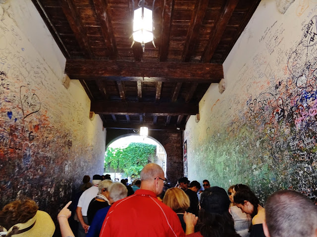 Fue el lugar turístico de Verona en el que encontramos mayor aglomeración de turistas procedentes de cualquier lugar del mundo, que en el mismo pasadizo de entrada a la casa dejan sus pintadas con declaraciones de amor.