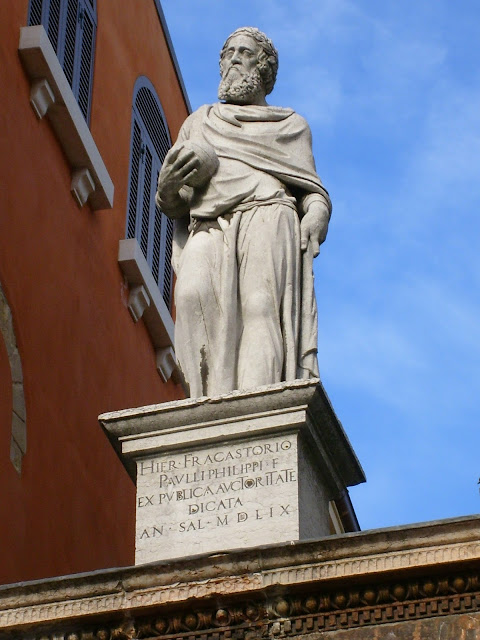 En uno de los arcos de acceso a la Piazza es muy conocida la estatua de Girolamo Francastoro, importante médico, filósofo y astrónomo italiano del siglo XV. Su figura sujeta una figura esférica en una de sus manos que representa al mundo y la leyenda dice que está pelota se caerá en la cabeza de la primera persona honorable que pase por debajo del arco.
