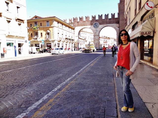 Llegamos a Verona acompañados (todo perfectamente planificado) con música de fondo en el coche y sonando la canción de Aznavour «Iremos a Verona». Música y viaje de nuevo generaron otro momento mágico.