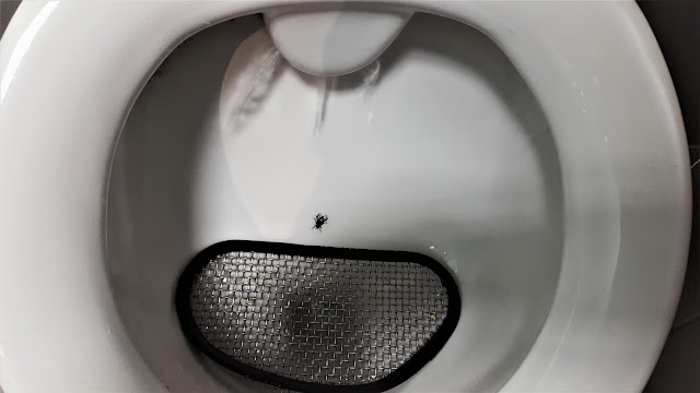 Y por último, el detalle divertido de los inodoros para caballeros del aeropuerto. Ponen un señuelo para que no se nos escape fuera del dispositivo, aquello que no se nos debería escapar nunca del mismo.