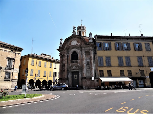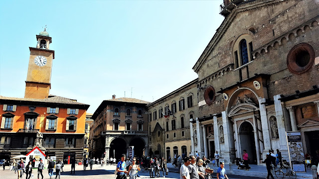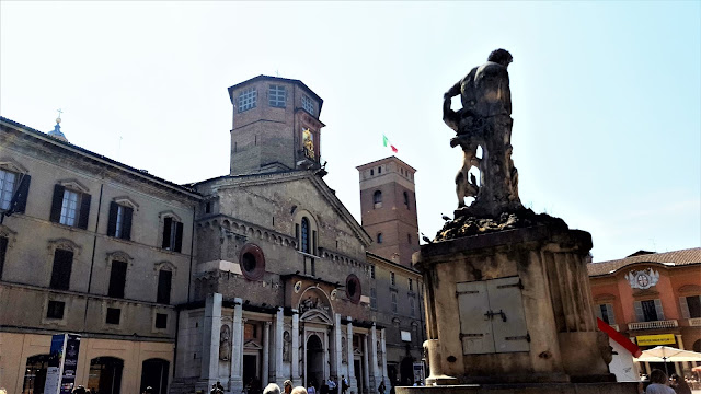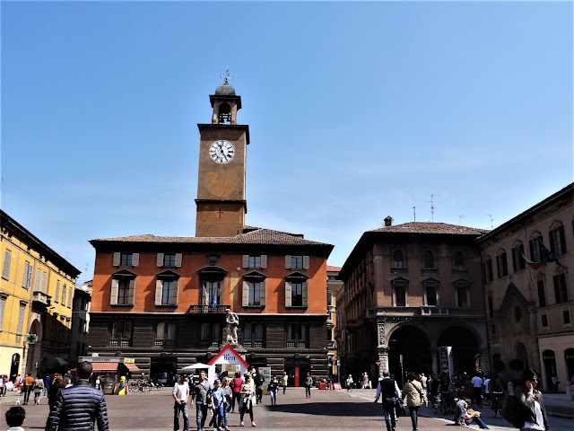 Ya en en la adyacente Plaza Camillo Prampolini, corazón de la ciudad, se sitúan los más importantes edificios civiles y religiosos, con la estatua del Cròstolo, dedicada a un torrente que corre en la provincia.