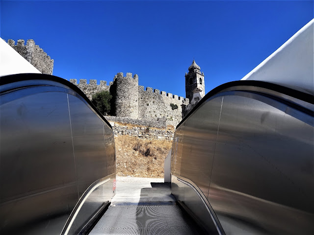Como curiosidad comentar que la llegada a la zona alta del Castillo es muy sencilla y cómoda debido a la instalación de varios ascensores de escalera. Desconozco si están habilitados para los turistas como nosotros, para los mismos vecinos o simplemente para facilitar la subida de esas hordas de jóvenes amantes del tecno que en esos 4 días del mes de agosto de cada año invaden Montemor. Algunos que otros vimos en las zonas de escaleras, con claros síntomas de agotamiento o quizás síntomas de algunas sustancias, de las permitidas y quizás también de alguna que otra de las prohibidas.