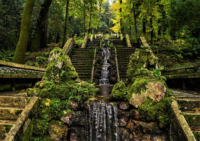 Íbamos a visitar este entorno de Buçaco al día siguiente pero el cambio de rumbo hizo que aprovechásemos para hacerlo durante este séptimo día viajero. Y fue un gran cierto porque nos pareció un lugar excepcional, al que posiblemente habría que dedicar algo más de tiempo del que nosotros empleamos en recorrer el Palacio, el Convento y el paseo por alguna de las 400 hectáreas que conforman el bosque. El mismo dicen que tiene más de 700 diferentes especies arbóreas. 400 propias del entorno atlántico portugués y el resto procedente de otros climas y lugares del mundo.