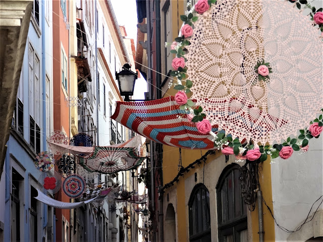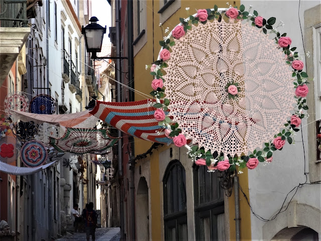 Una vez cruzamos los arcos , deambulamos por algunas estrechas y curiosas calles en las que había colgados numerosas piezas de ganchillo, en cables que cruzaban de un lado a otro de las calles.