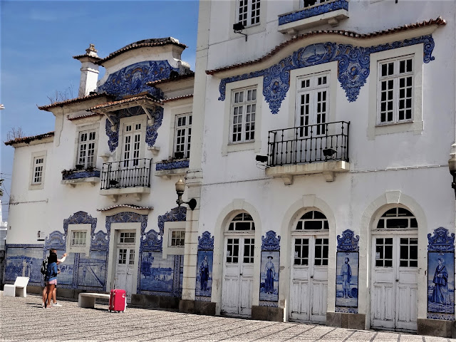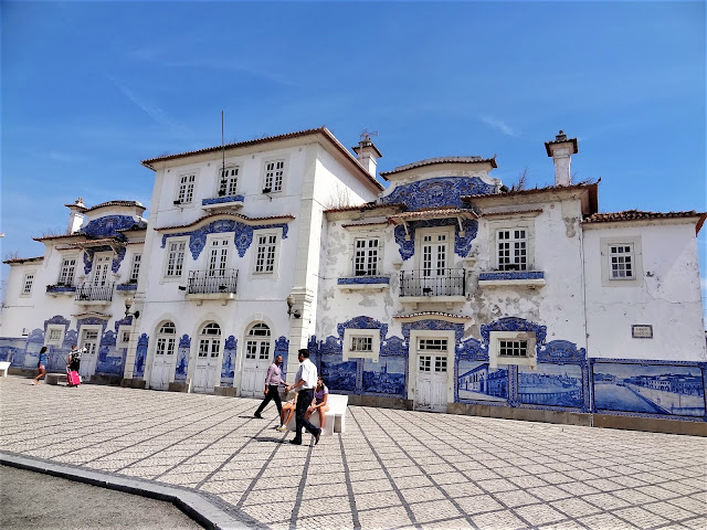 Y desde allí nos desplazamos hasta la entrada de la llamativa estación de tren de Aveiro, con esos paneles de azulejos azules tan hermosos y llamativos. Esta estación se comenzó a construir a mediados del siglo XIX, llegando hasta su aspecto actual debido a diferentes actuaciones que se realizaron en la misma durante los años y siglo posterior.