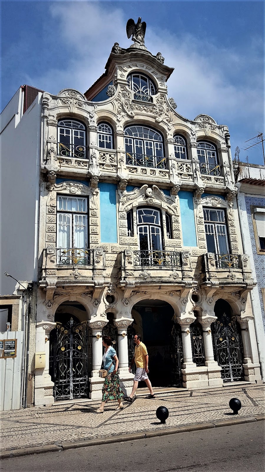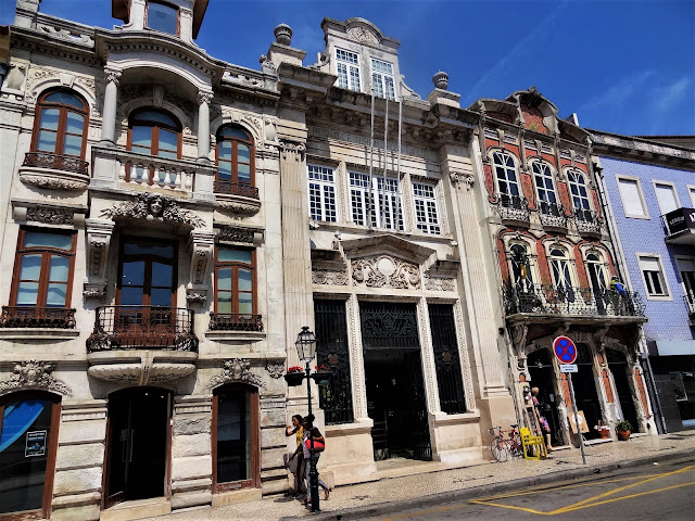 Volvemos hasta la zona de Jardim do Rossio y el canal Central para en el comienzo de la Calle Juan de Mendonça observar algunos de los más distinguidos edificios de arte modernista de Aveiro como son la fachada del Museo de Arte Nova, el casi colindante Museo de la Cidade, la Casa de Rossio de color azul pastel, el edificio de la Casa Dos Ovos Moles (producto dulce típico aveirense) además de varias casas y edificios de sumo interés arquitectónico y visual.