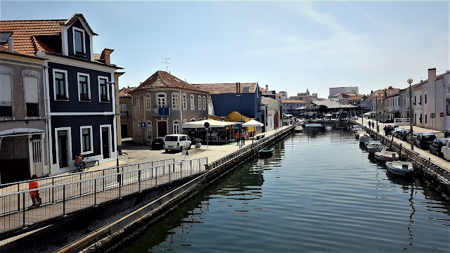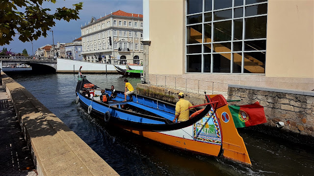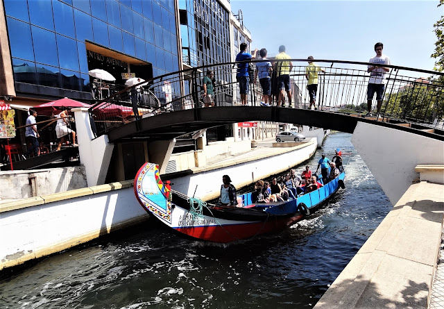 La salida del parking lleva directamente al Canal Central, donde ya se pueden empezar a observar los típicos Moliceiros, que son barcas al estilo góndola veneciana pero que llevan a más pasajeros que sus homónimas venecianas y que posiblemente debido a este nº de posibles viajeros, son embarcaciones movidas por motor.