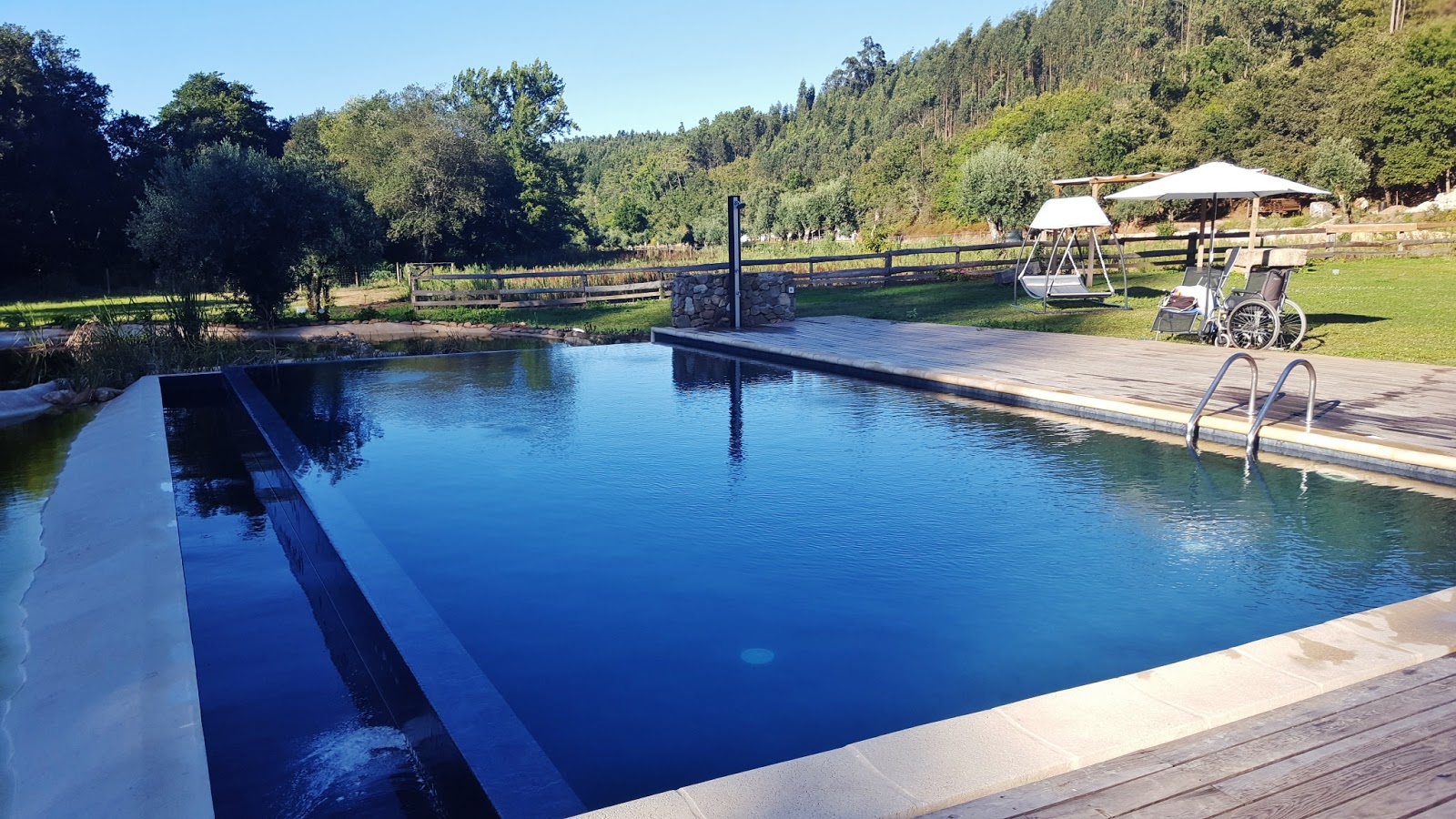 Este alojamiento fue uno de los especiales, no solo de este garbeo viajero, si no que se convirtió en uno de los sitios en los que hemos pernoctado que mejores recuerdos nos ha dejado. Los motivos de este buen recuerdo, no son solo las excelencias del lugar, una amplia finca que contiene la casa familiar y las edificaciones de los apartamentos disponibles para los turistas que se dejan caer por esta zona del centro de Portugal, así como una zona maravillosa de piscina muy bien cuidada. También cuenta con un porche abierto en el que nosotros realizamos los desayunos así como una cena acompañados por los propietarios de CASA DO VALE TOMAR