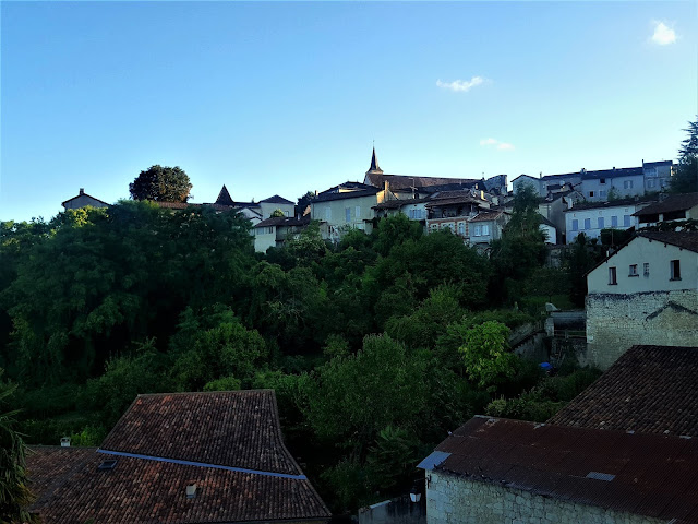 Cenamos en un de sus restaurantes, provisto de estupendas vistas porque su terraza balconada es una de esas casas que orientan su mirada al río Dronne. No puedo dejaros datos del mismo, ni su nombre porque como ya explico en alguna parte de la publicación de este viaje, en una actualización de mi teléfono móvil se fue al carajo toda esa información y detalles que suelo llevar de forma tecnologizada. Solo puedo recordar que esa cena fue un momento mágico, por la paz del lugar, sus vistas y buenas viandas.