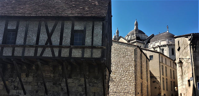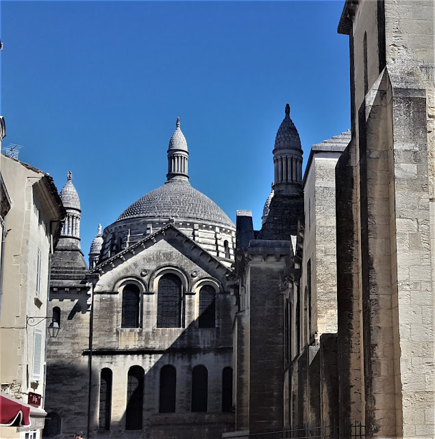 Después de dos muy interesantes visitas a Brantôme y Saint Jean de Cole, a la vez que muy cómodas, llegamos a Perigueux que es la capital del Perigord. En viajes anteriores no la habíamos incluido en nuestros recorridos bien porque nos quedaba un poquito a trasmano y además no teníamos unas referencias de esas a las que uno no es capaz de resistirse. Nos llamaba la atención la figura de su catedral, por su estilo diferente y característico, pero no parecía compensarnos la desviación o recorrido en kilómetros adicionales que tendríamos que hacer para llegar a Perigueux.