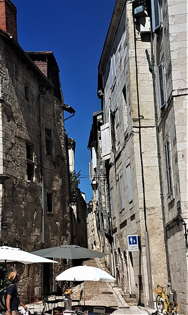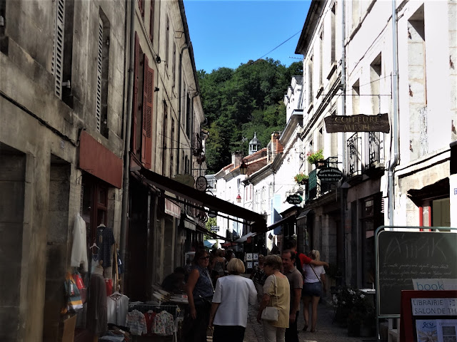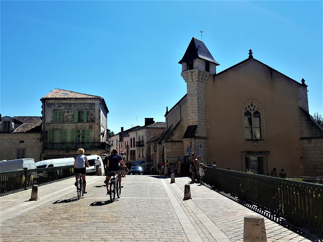 Conviene seguir por la Rue de Víctor Hugo que nos llevará hasta la Plaza del Mercado, en el que se realiza un mercado al aire libre. Desde esta Plaza du Marché , se obtienen unas muy buenas perspectivas de la Abadía Brantôme. Una vez en la Plaza se puede cruzar un puente e ir directamente a la Abadía , pero conviene dar un poco más de vuelta ,siguiendo el curso de las aguas para disfrutar en plenitud de la belleza y monumentos de este lugar.