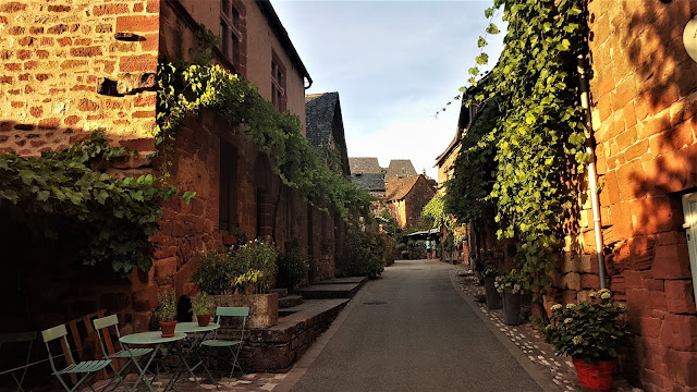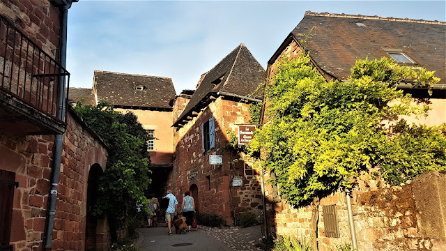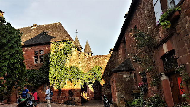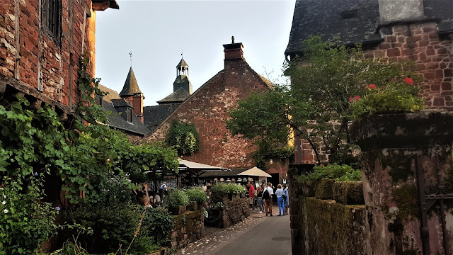 Un paseo en Collonges es delicioso. Imperdible caminar por sus calles empedradas, flanqueadas por casas, palacios, castillos iglesias y mansiones medievales de piedra arenisca roja, tejados de pizarra negra y antiguas chimeneas, todo acompañado de una exuberante vegetación que inunda fachadas de casas y edificios, todos ellos llenos de flores, parras, etc.