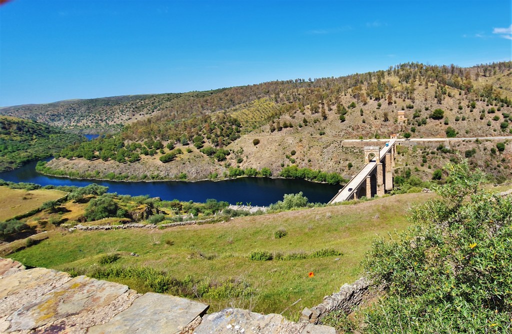 164 kilómetros de ruta para el segundo día viajero que nos llevará desde Cáceres ciudad, hasta el pueblo de Mãrvao en Portugal. En camino directo separan a estas dos poblaciones poblaciones unos 115 kilómetros aproximadamente. Nosotros hicimos un poquito más largo el recorrido porque quisimos pasar por los pueblos Alcántara y Valencia de Alcántara también en la provincia de Cáceres, atraídos por el alto valor patrimonial, artístico, cultural y natural de los dos, pero especialmente Alcántara y su famoso Puente Romano del siglo II convertido en su principal emblema y atractivo más reconocido, pero no el único.