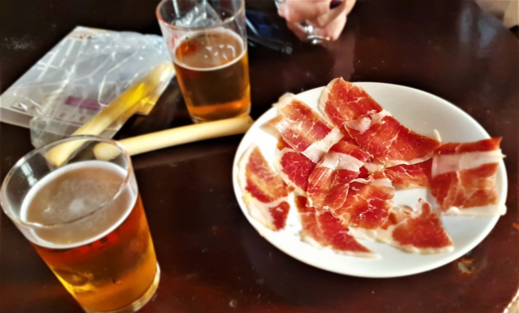 Estupendo el recorrido por el pueblo de Fregenal, que nos gustó mucho. Terminamos tomando unas cañitas acompañadas de una tapa de jamón ibérico local, que como no podía ser de otra manera estaba espectacular.