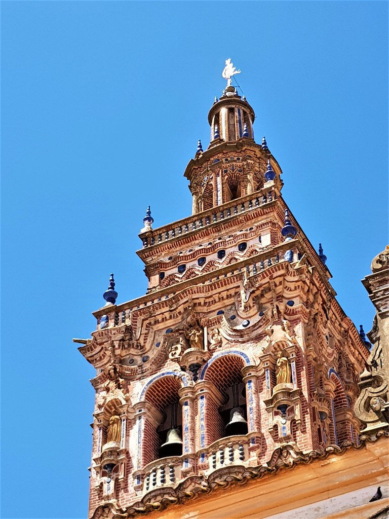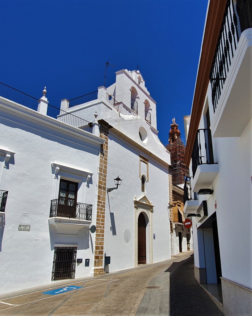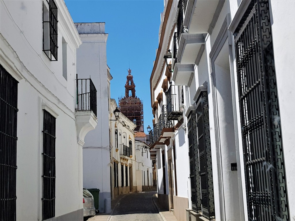 A su lado la torre que se levantó en el año 1759, que dicen es parecida en lo estilístico con la Giralda de Sevilla. El conjunto de fachada y torre en esta bella iglesia es uno de los lugares que hay que ver si o si, en Jerez de los Caballeros.