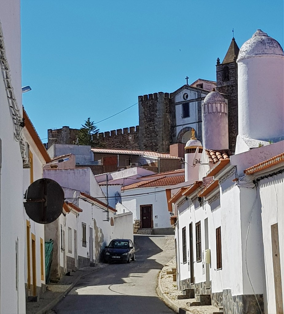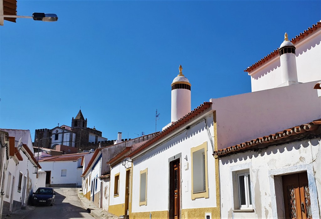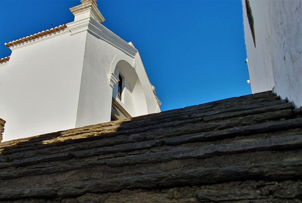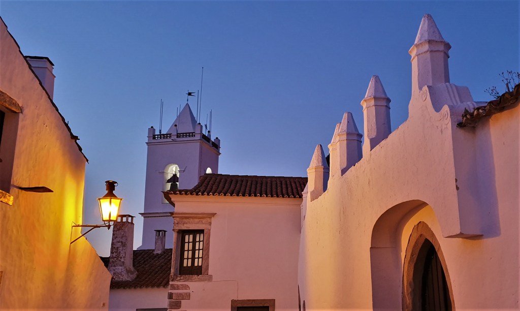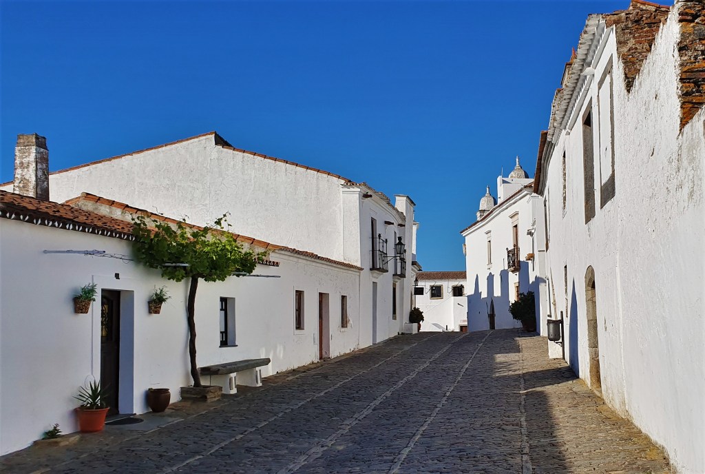 Es pura magia caminar por las calles empedradas de Monsaraz, con encaladas casas blancas y varios edificios edificios civiles y religiosos, de los que cabe destacar la Iglesia Matriz.