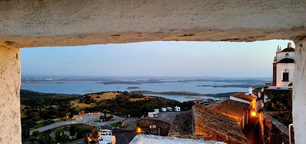 Posiblemente desde el castillo hay una de las mejores vistas del Alentejo, tanto del entorno natural maravilloso del Río Guadiana y la presa de Alqueva, como por la visión que se tiene del resto del pueblo. ¡Un lujazo!