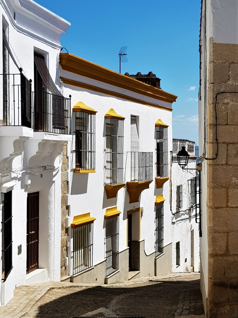 En todos ellos rasgos comunes como son rejas de forja, las blancas cornisas sobresalientes, los muros encalados en blanco y los escudos nobiliarios.