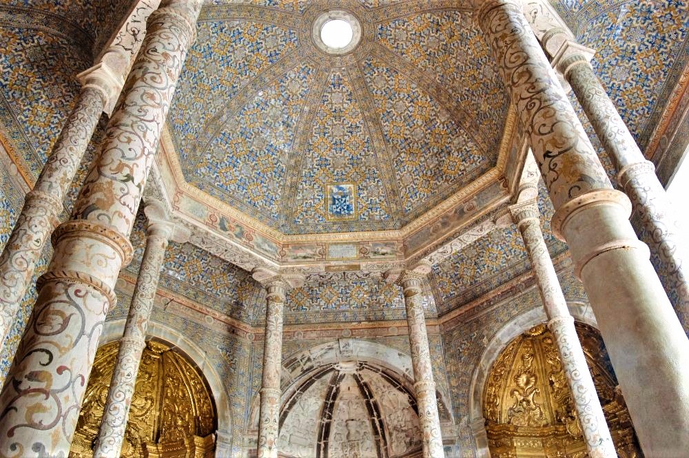 Su interior tiene unas sorprendentes columnas retorcidas y seis retablos barrocos con azulejos. Y en su estructura exterior destacan también falsas almenas, gárgolasy pináculos.