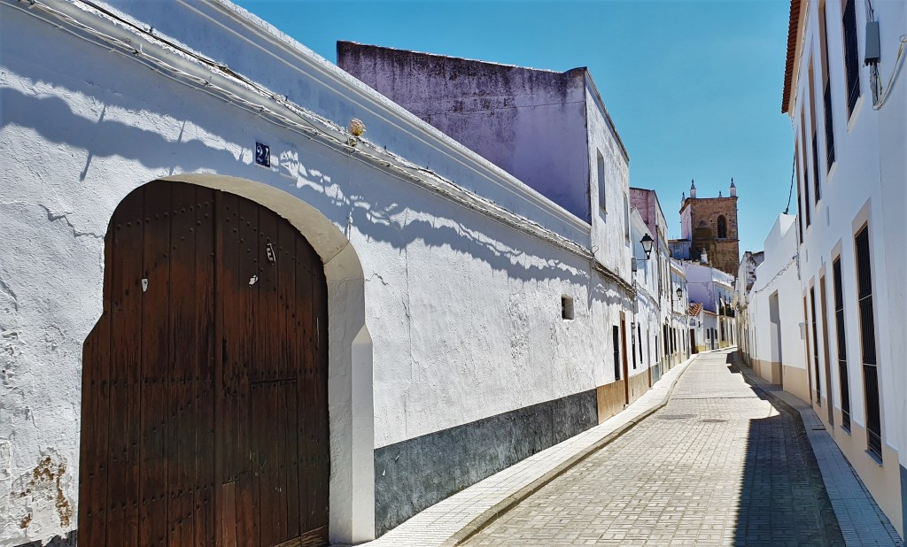 Estacionamos el coche en la Calle Lope de Vega, al lado de la Torre del Homenaje de 37 metros de altura y que perteneció a parte de la estructura defensiva de la ciudad. En realidad hay en Olivenza vestigios de varios recintos amurallados que corresponden a diferentes momentos históricos.