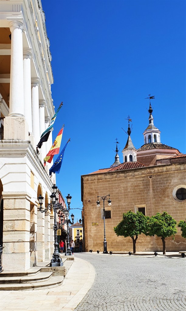 Caminando por la calle Zurbarán llegaremos hasta otra de las Plazas importantes de Badajoz, la Plaza de España que es el punto central de la ciudad durante toda su historia. En ella se encuentran la Catedral de San Juan Bautista y el Palacio Municipal, en una plaza que desembocan algunas de las principales calles del interesante Casco Antiguo de Badajoz.