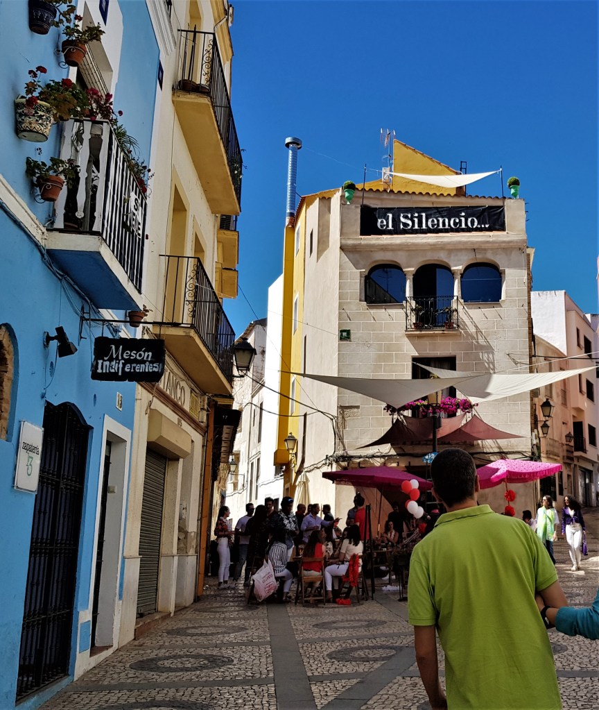 Para subir hasta Plaza Alta decidimos hacerlo por la Calle Moreno Zancudo en la que nos encontramos bastante animación y una pintoresca terraza biblioteca.