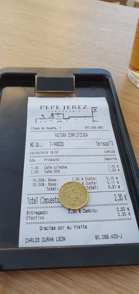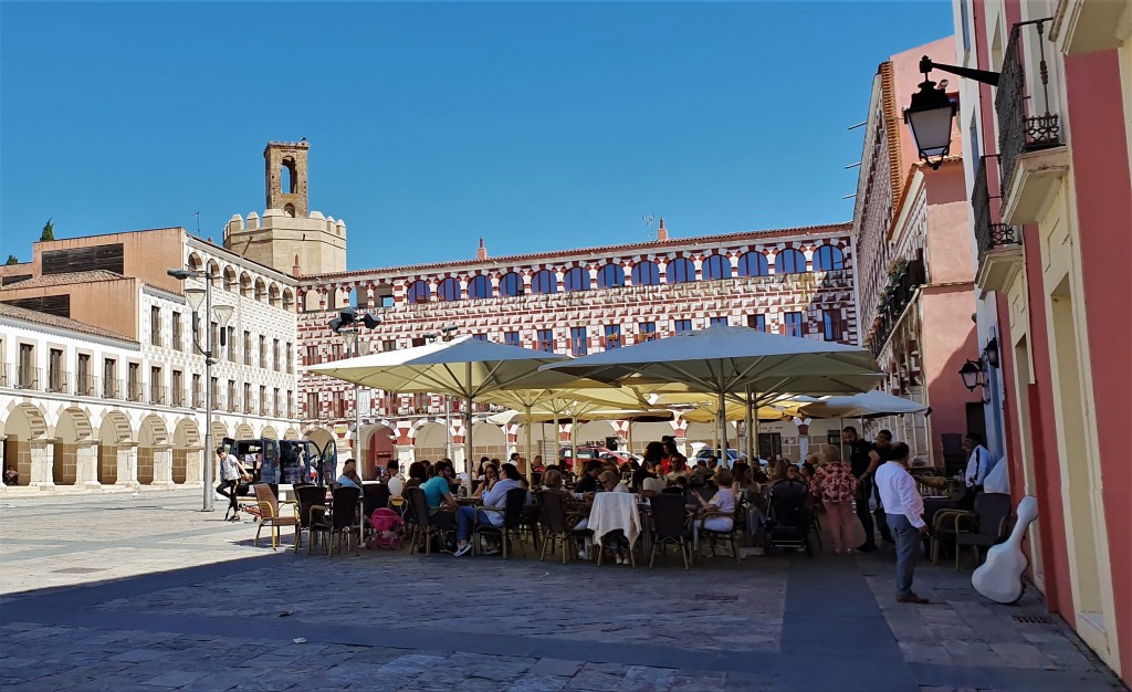 Antes de nuestro desplazamiento final a Elvas, nos tomamos un pequeño descanso en la terraza de una cafetería cercana a nuestro aparcamiento, pagando por un café y una caña un precio más que razonable y nada comprable a lo acostumbrado en otras latitudes.