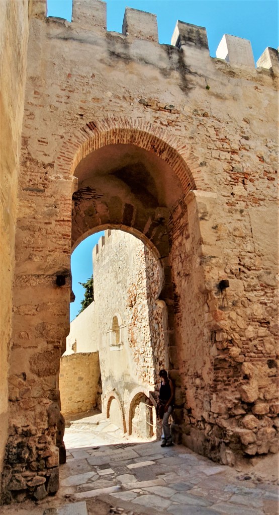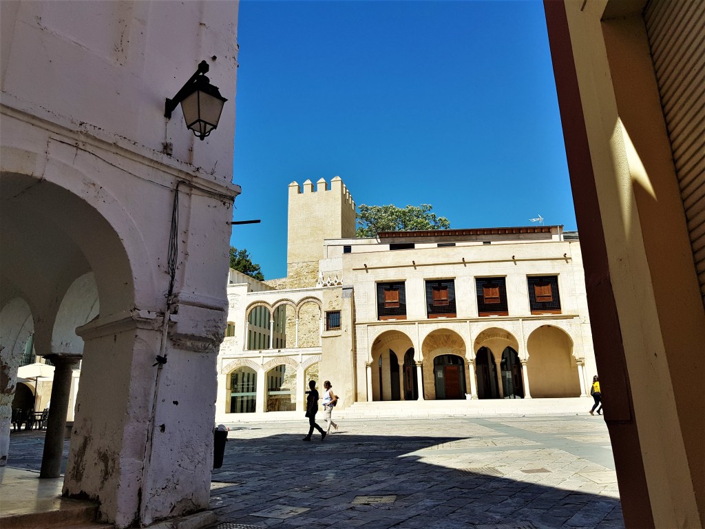 Desde esta bonita zona, volvemos un poco sobre nuestros pasos para descender hasta el centro de la ciudad, caminando por hermosas calles, arcos restos de la primeras murallas islámicas, palacios, casas blancas, etc.