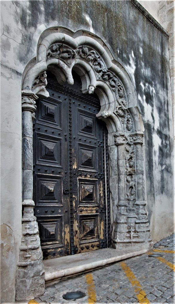 Continuamos nuestro recorrido dejando a nuestra izquierda el lateral de la catedral, donde se ubican unas puertas que conservan el estilo manuelino inicial de la catedral,. En su fachada fue perdiendo ese estilo para terminar siendo de estilo fortificado y neoclásico.
