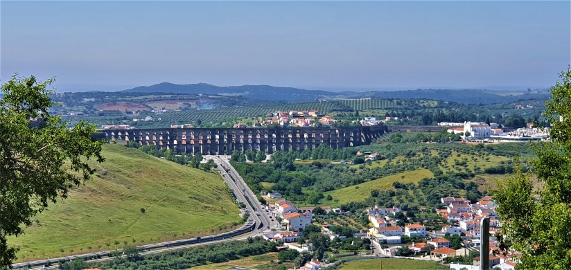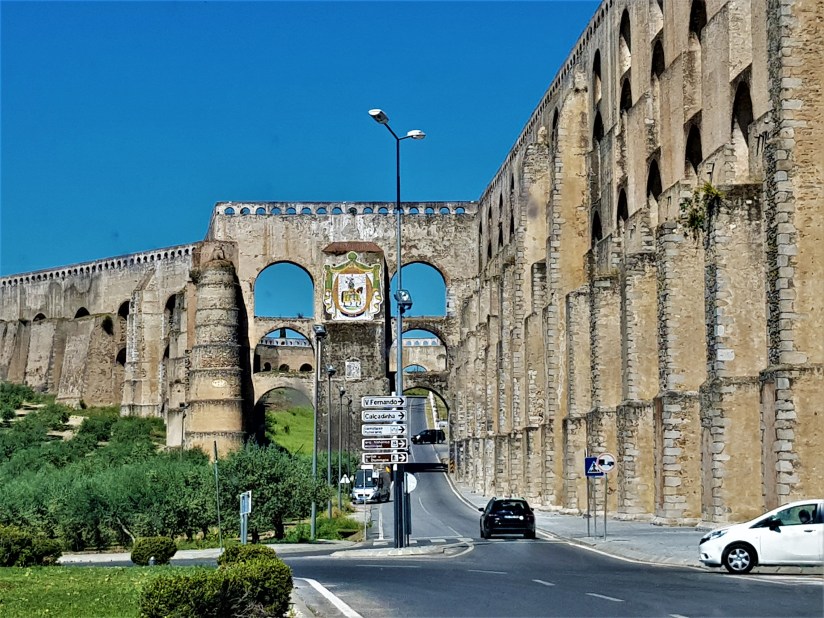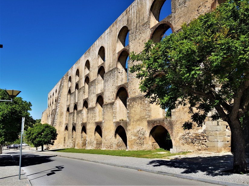 El acueducto de la ciudad llamado de Amoreira, es quizás el principal emblema de Elvas. Excelente obra de ingeniería hidráulica que se inició en el año 1498 y se culminó en el 1622. Une ambas poblaciones durante 8 kilómetros, de los cuales al menos durante cinco kilómetros y medio, se eleva mediante arcadas que en algunos puntos más altos alcanzan los 30 metros.