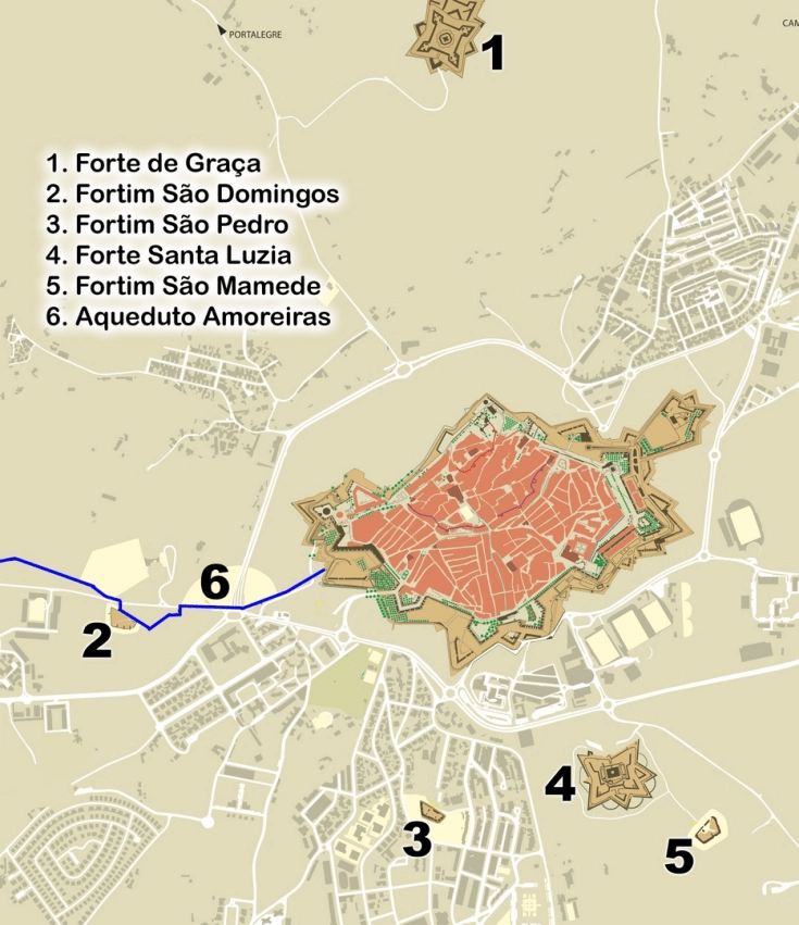 Históricamente Elvas fue un lugar estratégico en las diferentes guerras e invasiones, afianzándose en el siglo XVII, momento en el que diseñaron la estructura militar defensiva necesaria. Autor intelectual fue un Jesuita holandés llamado Cosmander, que a su vez se inspiró en otros maestros holandeses como Simon Stevin y Samuel Marolois.
