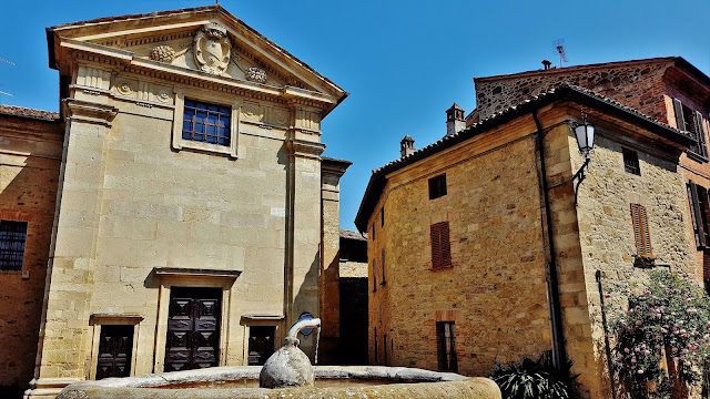 El pueblo no dispone de calles asfaltadas y se camina por calles de tierra que conducen por bellísimas casas, tiendas, comercios , iglesias y pequeños palazzos, fuentes, estatuas, frescos en fachadas, , puertas , etc, etc, todos ellos con un estilo de construcción propio y muy genuino.
