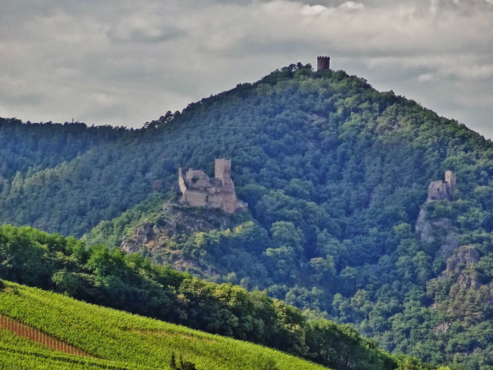 Desde las calles de la villa de Ribeauville se divisan varias fortificaciones en las montañas cercanas. Una es el Castillo de San Ulrich, el ruinoso fuerte de Girsberg y el de Ribeupierre aún más elevado