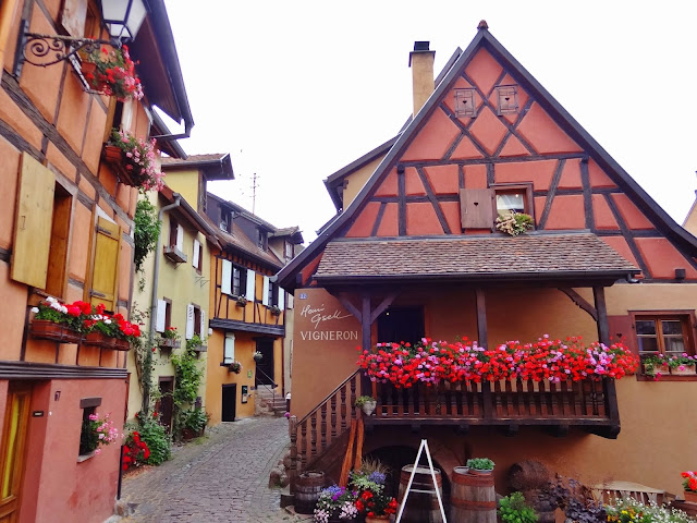 Una vez se cruzan las varias puertas de acceso a Riquewihr y de forma descendente , se encuentra la calle principal del pueblo, Calle del general de Gaulle, en la que encontraremos numerosos edificios con bellísimos colores, entramados de madera, amplios ventanales y espectaculares patios interiores.