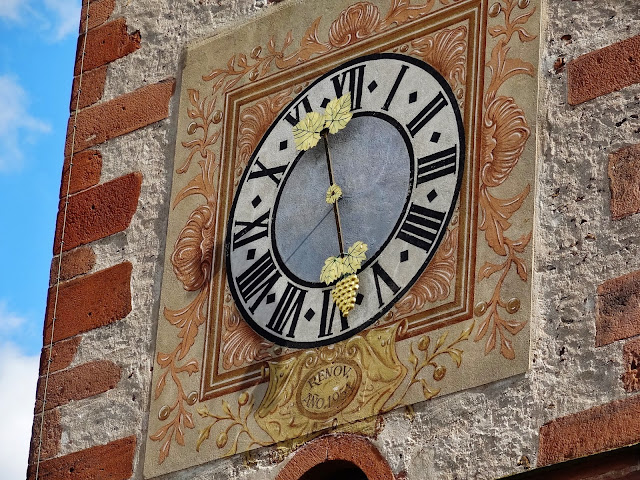 Las agujas del reloj de la Iglesia de Hunawihr son un perfecto homenaje a la tradición de vitivinicultura predominante en la región.