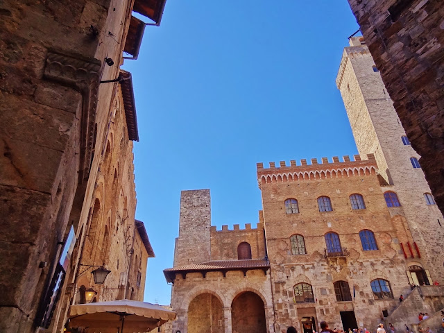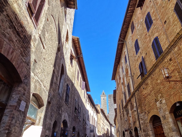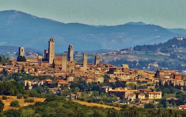 San Gimignano tiene origen claramente medieval , incluido en la clasificación «Bandiera Arancione» y situado en un entorno espectacular es muy conocido por sus torres, auténticos rascacielos en la época ,símbolos de poder y riqueza y de los que se conservan, dicen 15 de los 72 que llegó a tener.