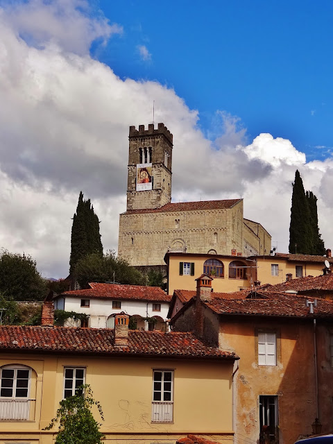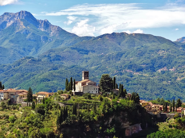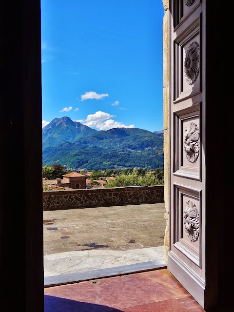En la parte más alta del castillo, dominado por el impresionante tamaño del Duomo hay unas espectaculares vistas con los tejados irregulares de la parte antigua de la ciudad y rodeados por el verde de las colinas salpicadas de pequeños pueblos y casas de la periferia y en última instancia, el magnífico telón de fondo de los Alpes Apuanos.