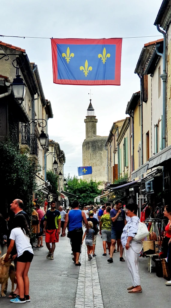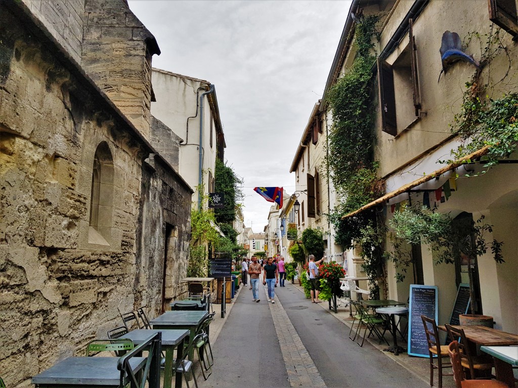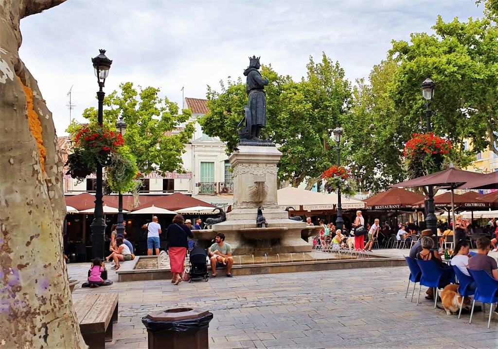 Inmediatamente nada más acceder continuaremos el recorrido por la Calle Théaulon que conduce de forma directa hasta la Place San Luis, en la que los comercios, restaurantes y las terrazas de estos lo invaden casi todo, dejando espacio mínimo. Eso y que en verano el número de turistas es muy considerable, hace que el recorrido por el centro del Aigues Mortes no sea el ejemplo de absoluta paz y tranquilidad. A pesar de estos pequeños peros, el paseo por la ciudad sigue siendo encantador.