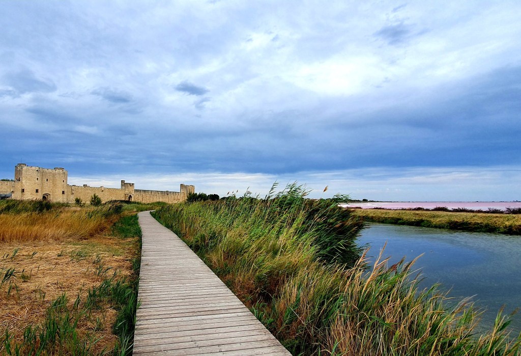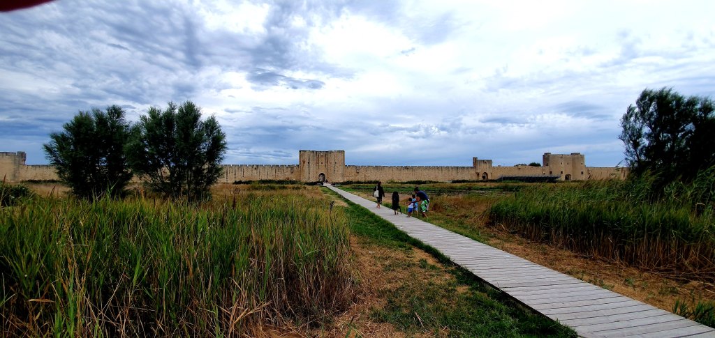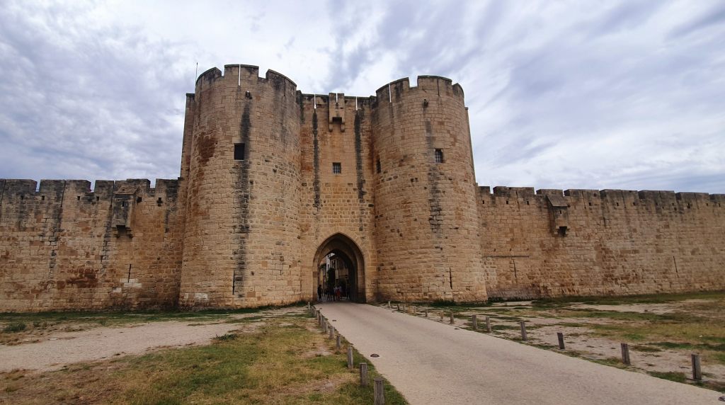 Nos levantamos muy pronto y sobre las 5:45 estábamos en ruta realizar los más de 1000 y pocos kilómetros nos esperaban. Al final lo hicimos con 3 paradas y sobre las cuatro de la tarde llegamos a Aigues Mortes, que decidimos sería población histórica que visitaríamos en la Camarga, tanto por su ubicación aparentemente adecuada en ese periplo viajero transitando hacia el este francés, como por los atractivos propios de una ciudad amurallada.