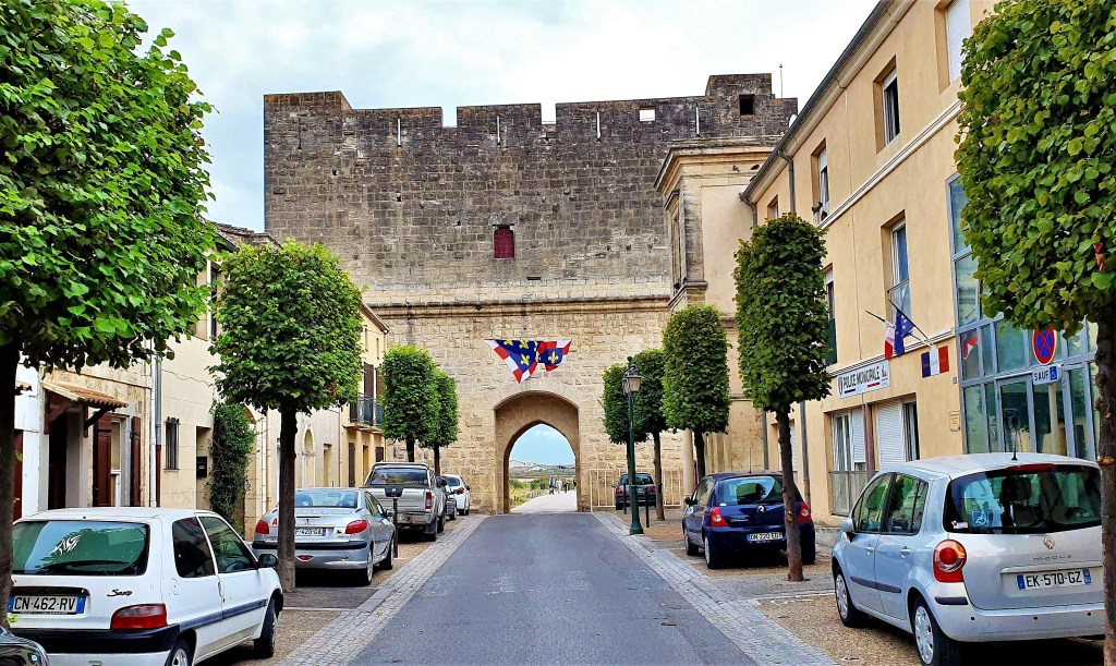 Desde esta zona accedimos al interior del recinto amurallado desde las Puertas des Moulins, las más próximas a las marismas salinas que fueron la principal fuente de riqueza de Aigues Mortes durante el medievo. Se llaman así porque tenían dos molinos de viento en el siglo XVII.