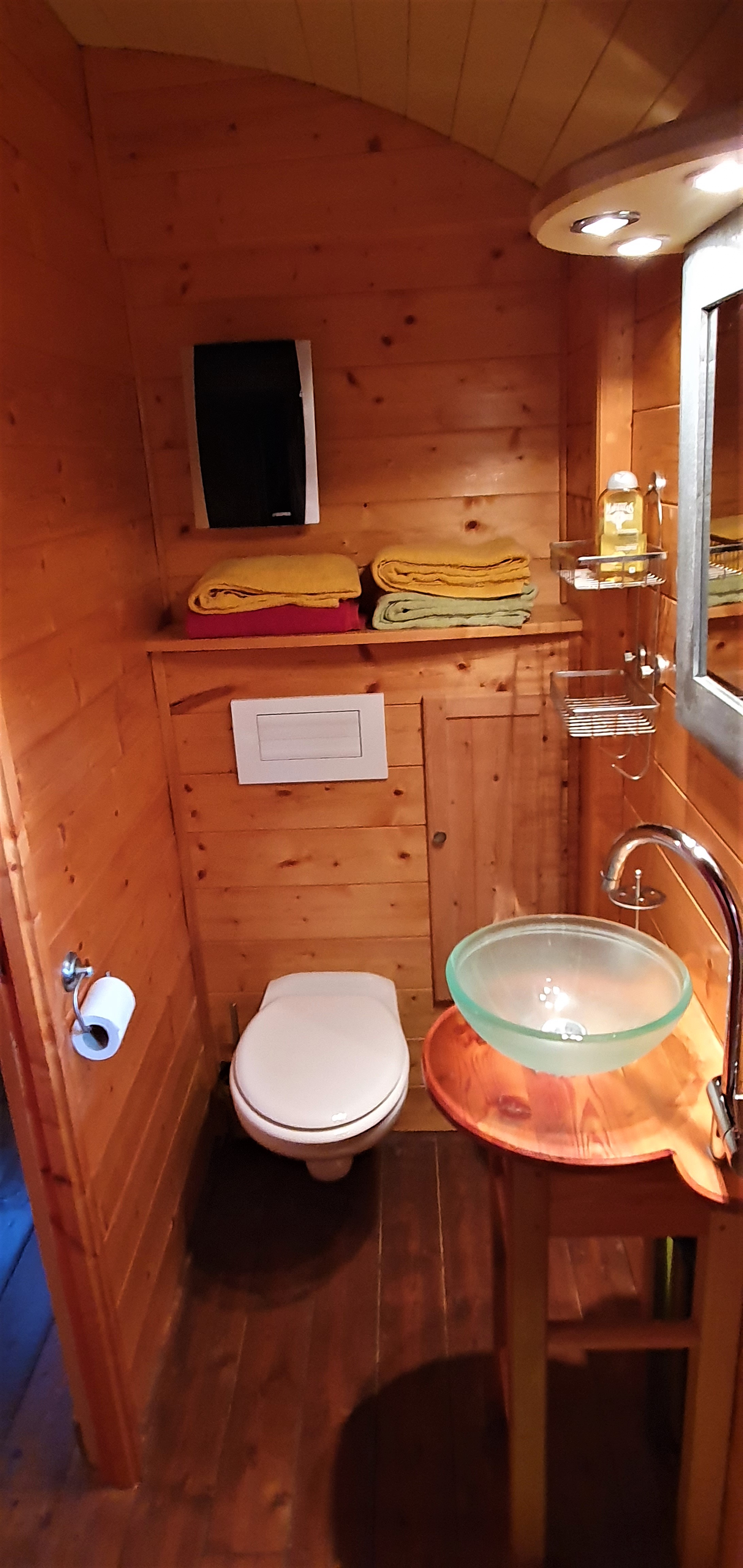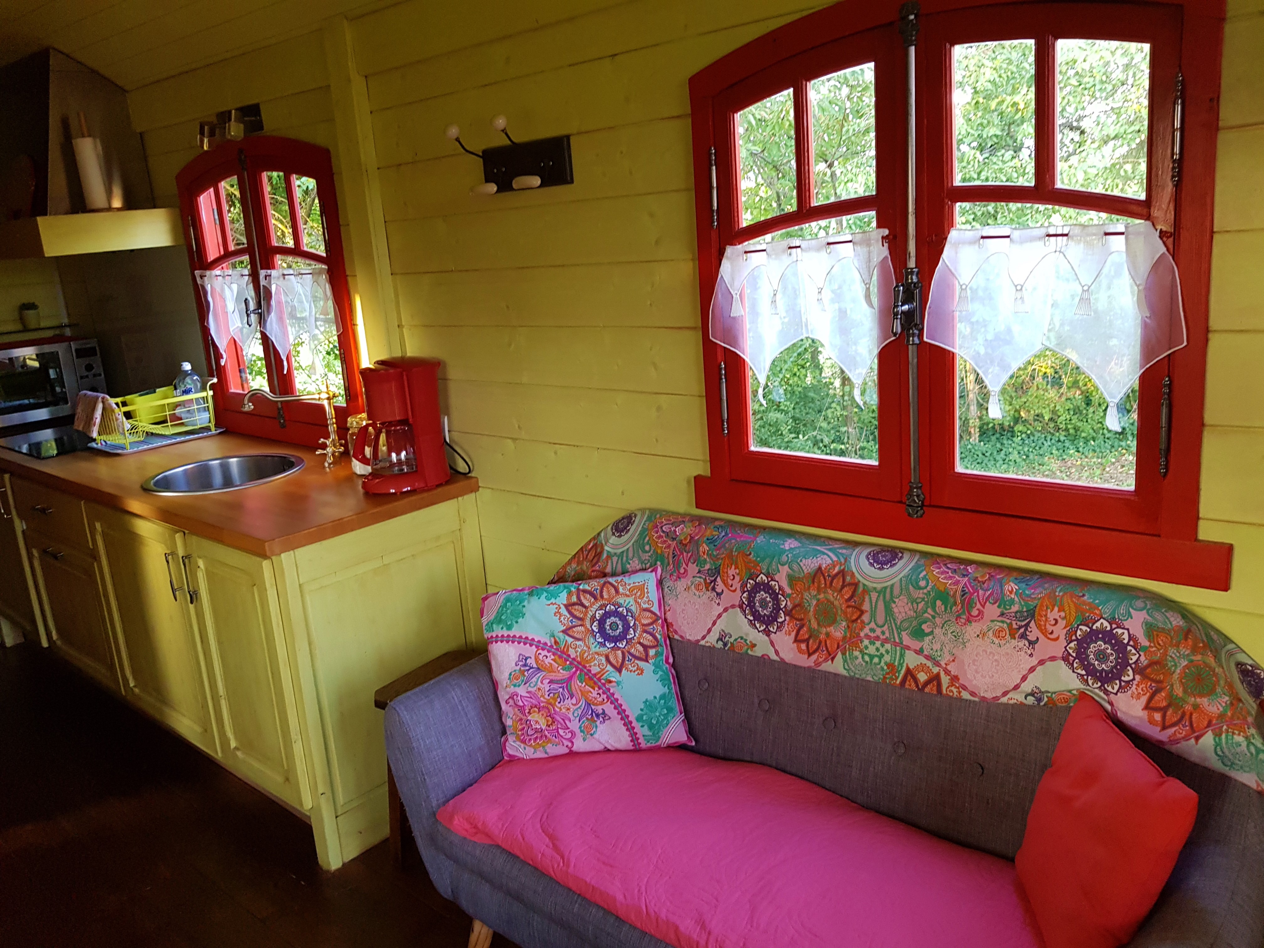 Se trata de un carromato de feria perfectamente restaurado y equipado, para convertirse en un excelente apartamento con ruedas. Cocina completa equipada, baño y una gran cama, en conjunción con la tranquilidad del espacio en el que se encuentra ubicado, hacen de este espacio uno de los más sorprendentes lugares en los que se pueda dormir en una ruta viajera por la zona, en la que el cercano Parque Natural regional del Vercors ofrece innumerables atractivos naturales, culturales y patrimoniales.