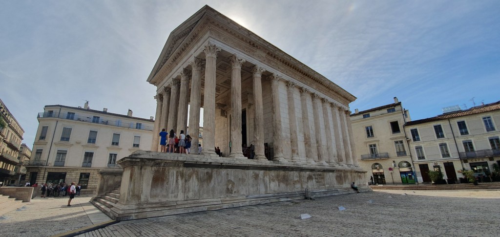 Aparcamos muy cerca de uno de los más importantes monumentos de la ciudad, la llamada Maison Carrée, que traducido de forma literal significa la Casa Cuadrada y que es un maravilloso templo de origen romano construido a finales del siglo I a.c. Actualmente se encuentra en un excelente estado de conservación debido a las varias restauraciones que se han realizado a lo largo de su historia.
