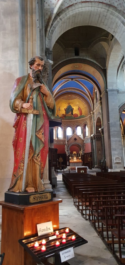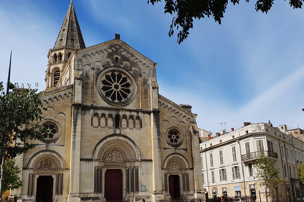 Tomamos camino de retorno para llegar hasta los Jardines de la Fontaine y el Templo de Diana, no sin antes detenernos en la bonita Iglesia de Saint Paul, construida entre los años 1835 y 1849, de estilo neorrománico, destacan su campanario de 62 metros de altura, los pórticos y el enorme rosetón. En su interior frisos y coloridos techos de estilo neobizantino hacen necesario y recomendable detenerse unos minutos a recorrer el interior de la iglesia.