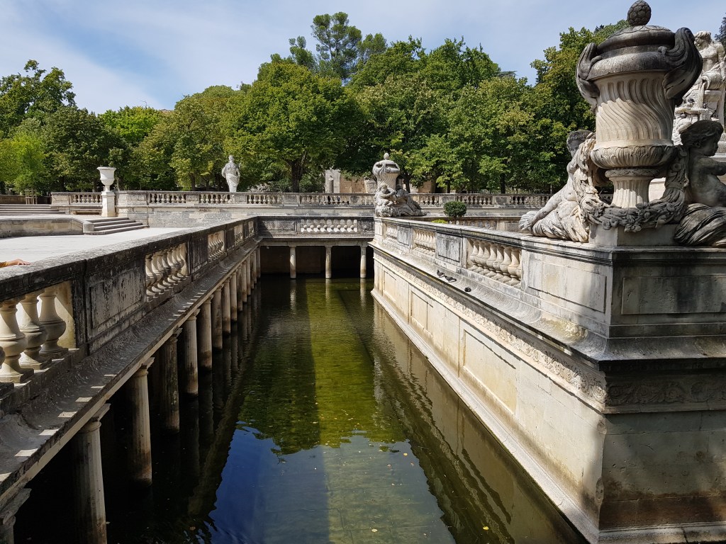 En su parte baja varios atractivos canales, estanques rodeados de balaustres, estatuas y frondosa vegetación. En la parte más elevada de los jardines, encontraréis otro importante monumento romano, la Tour de Magne. Se trata de una torre de origen romano que formaba parte de las también antiguas murallas de la ciudad. Limitados de tiempo disponible, descartamos el esfuerzo que significa subir hasta la torre con un paseo de casi 1 kilómetro ida y otro de vuelta. Nos conformamos con el placentero y tranquilo paseo por los jardines, visitando también las próximas ruinas del Templo de Diana construido en el siglo I d.c.