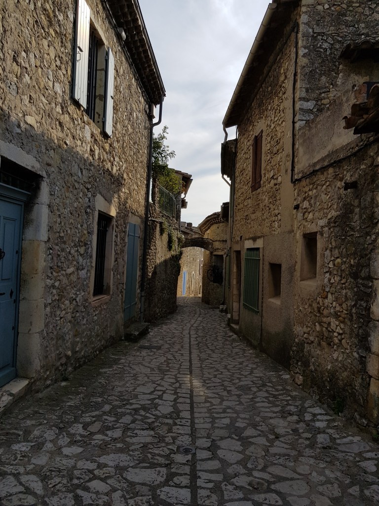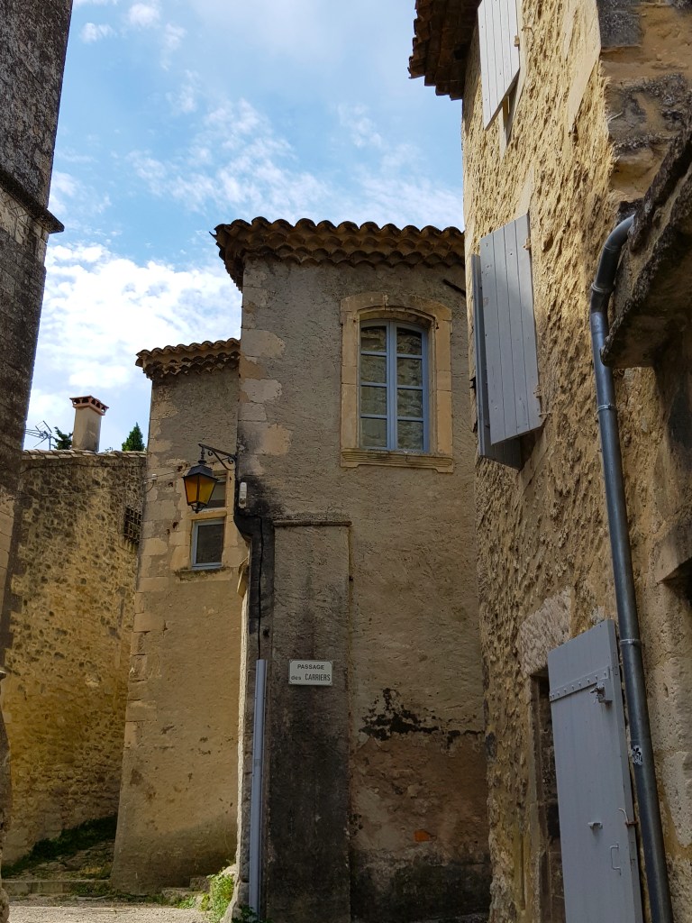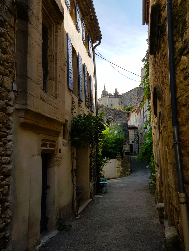 Más arriba aún el bellísimo Grignan con su elegante e imponente castillo. Brutal su belleza. Y también en el departamento del Drome, el pueblo de Mirmande, clasificado como uno de los más bellos pueblos de Francia. Empinadas cuestas y estrechísimas calles por las que no pueden circular los coches, llevan hasta la Iglesia de San Foy. Hoy la Iglesia es una sala de exposiciones, imagino que debido a la ausencia de fieles que subieran comprometidos, tan inclinadas calles para escuchar los, imagino en principio, sermones diarios, posteriormente semanales … mensuales. ¡¡¡Debe ser imposible mantenerse firme en la fe con tan pronunciadas cuestas!!!
